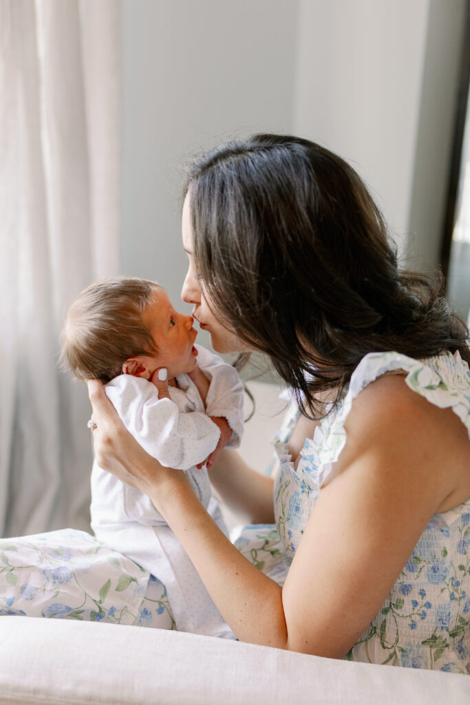 Soft, neutral tones photograph beautifully and keep the focus on your baby and your connection as a family. Think: